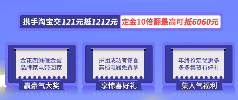 攜手淘寶交121元抵1212元? ?定金10倍翻最高可抵6060元